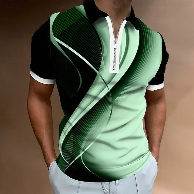 Geometric Line Zip Polo